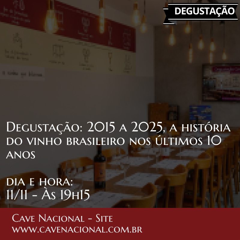Participe da masterclass inaugural da série de eventos em comemoração aos 10 anos da Cave Nacional. Nesse encontro (11/11) Rogerio Dardeau, deverá abordar a evolução do vinho brasileiro nos últimos 10 anos.