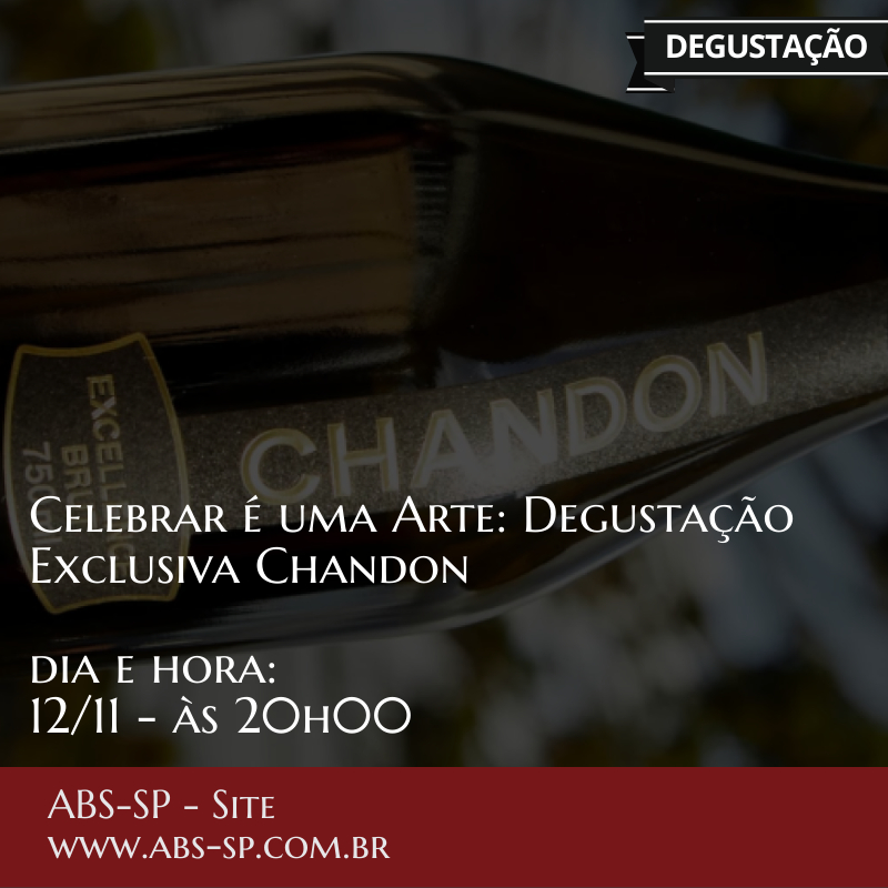 A ABS-SP convida você no dia 12 de novembro para uma noite dedicada à excelência da nossa parceira Chandon, referência em espumantes brasileiros de prestígio internacional.