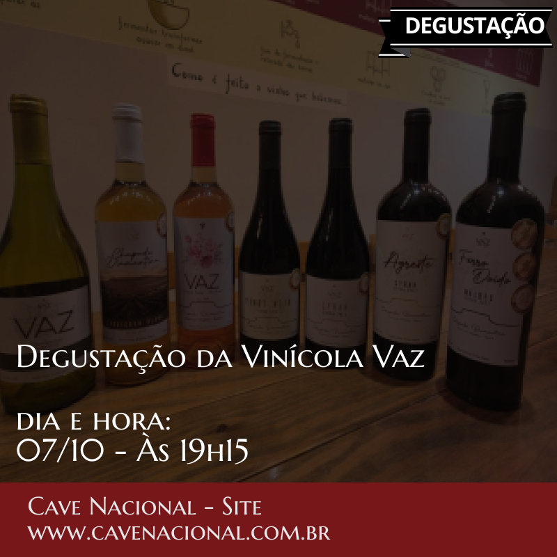 Dia 07-10, terça-feira, vamos fazer uma degustação dos vinhos da Vinícola Vaz localizada na Chapada da Diamantina. A família Vaz foi pioneira na produção de vinhos nesse novo terroir.