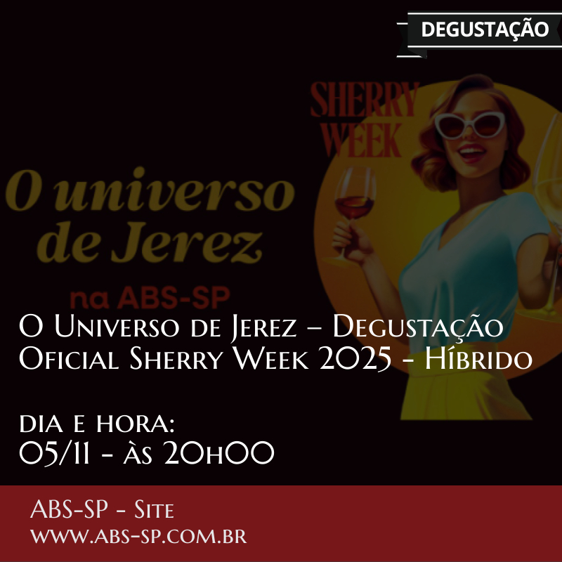 No dia 05 de novembro, às 20h, a ABS-SP recebe um evento especial e oficialmente registrado na Sherry Week 2025, celebrando a tradição e a diversidade dos vinhos de Jerez um dos grandes tesouros da enologia mundial.